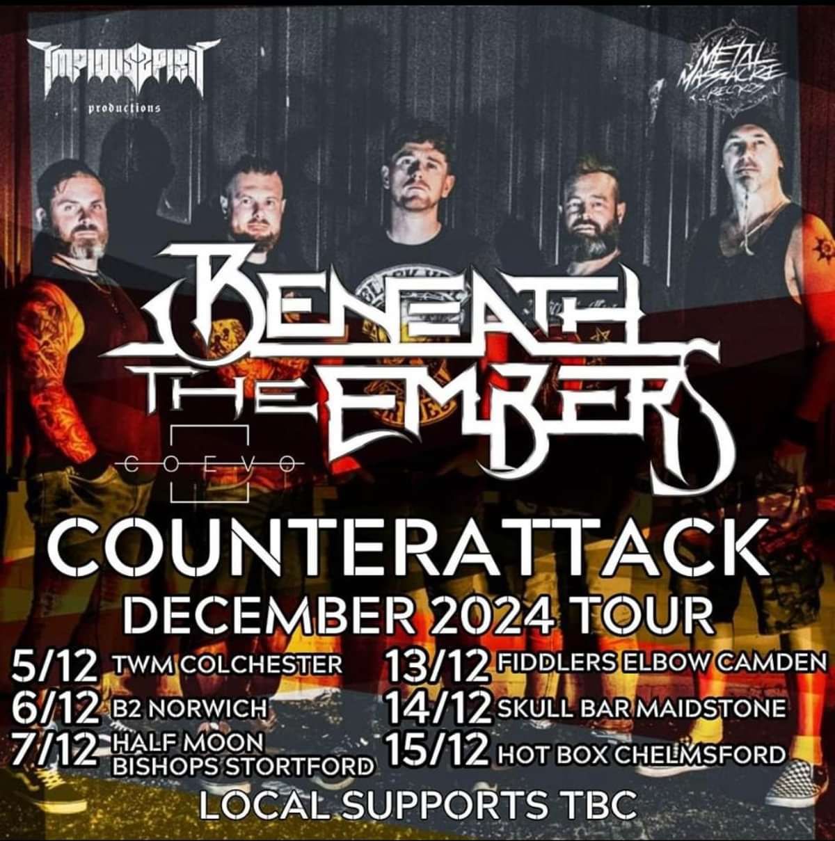 Joined once again by their Italian comrades in COEVO (featuring members of Italian power metal band Temperance) and multiple local support acts, Beneath The Embers' exclusive 2024 dates will see them draw a line in the sand, as they prepare to head into the studio for the follow up to their 2022 debut, Condemned.